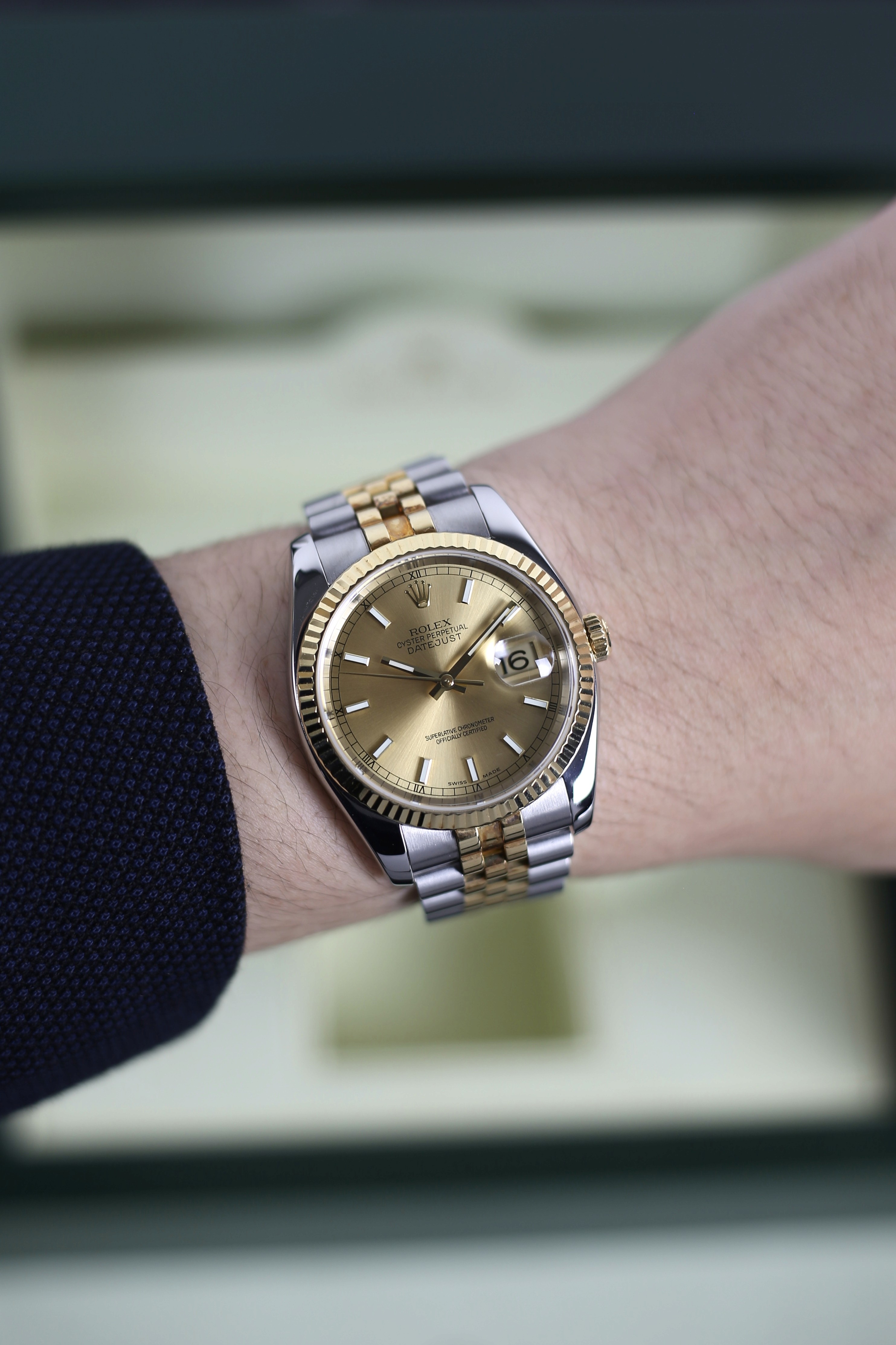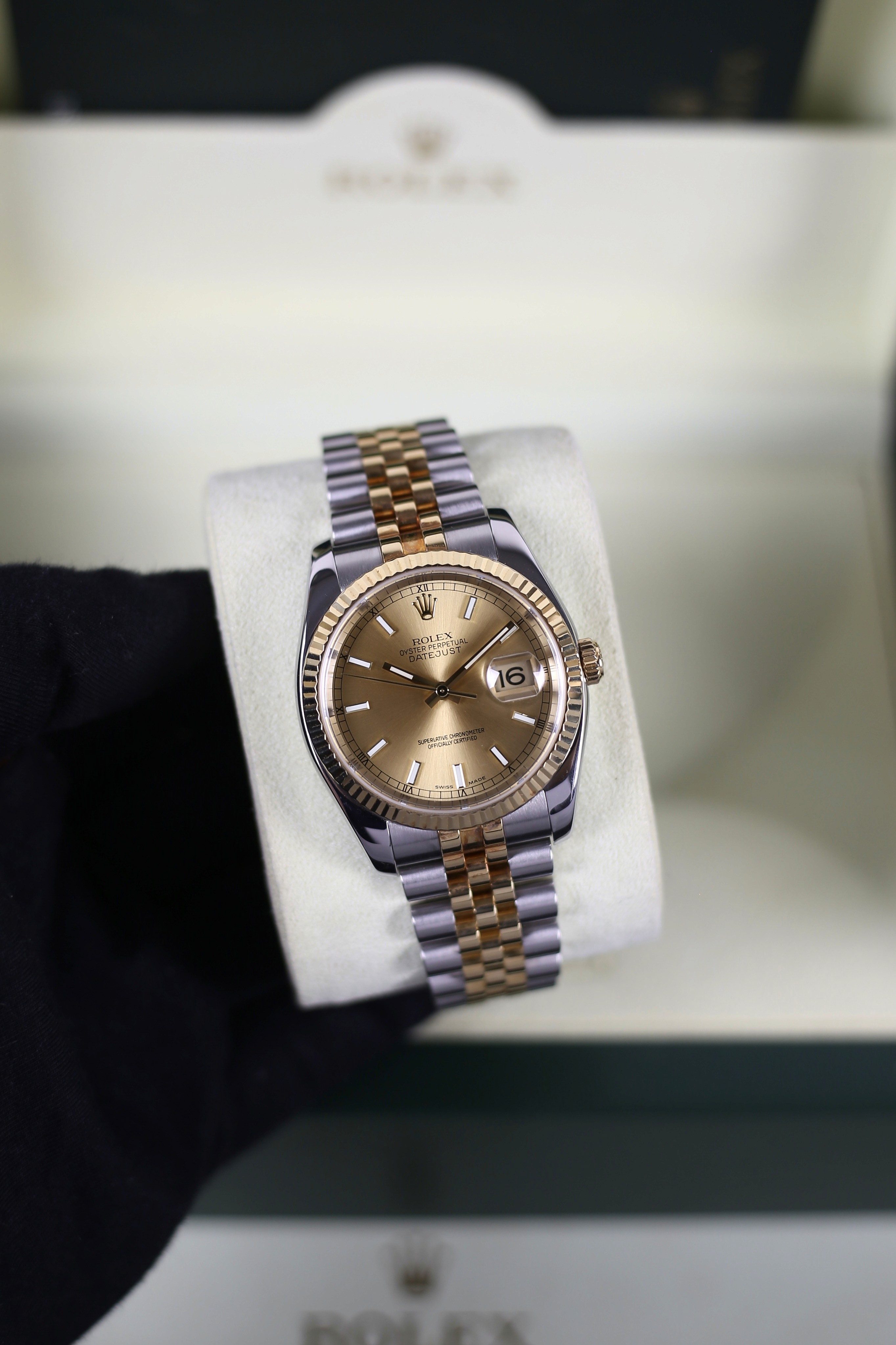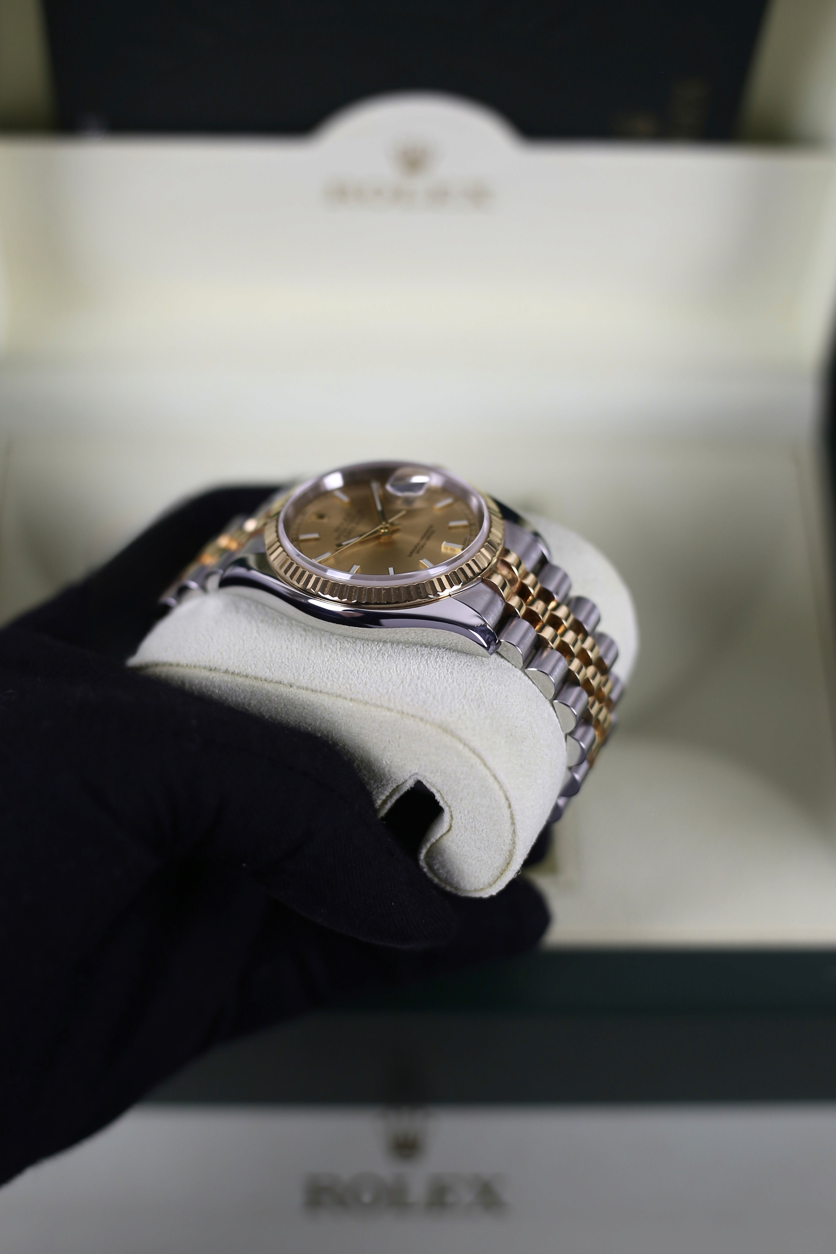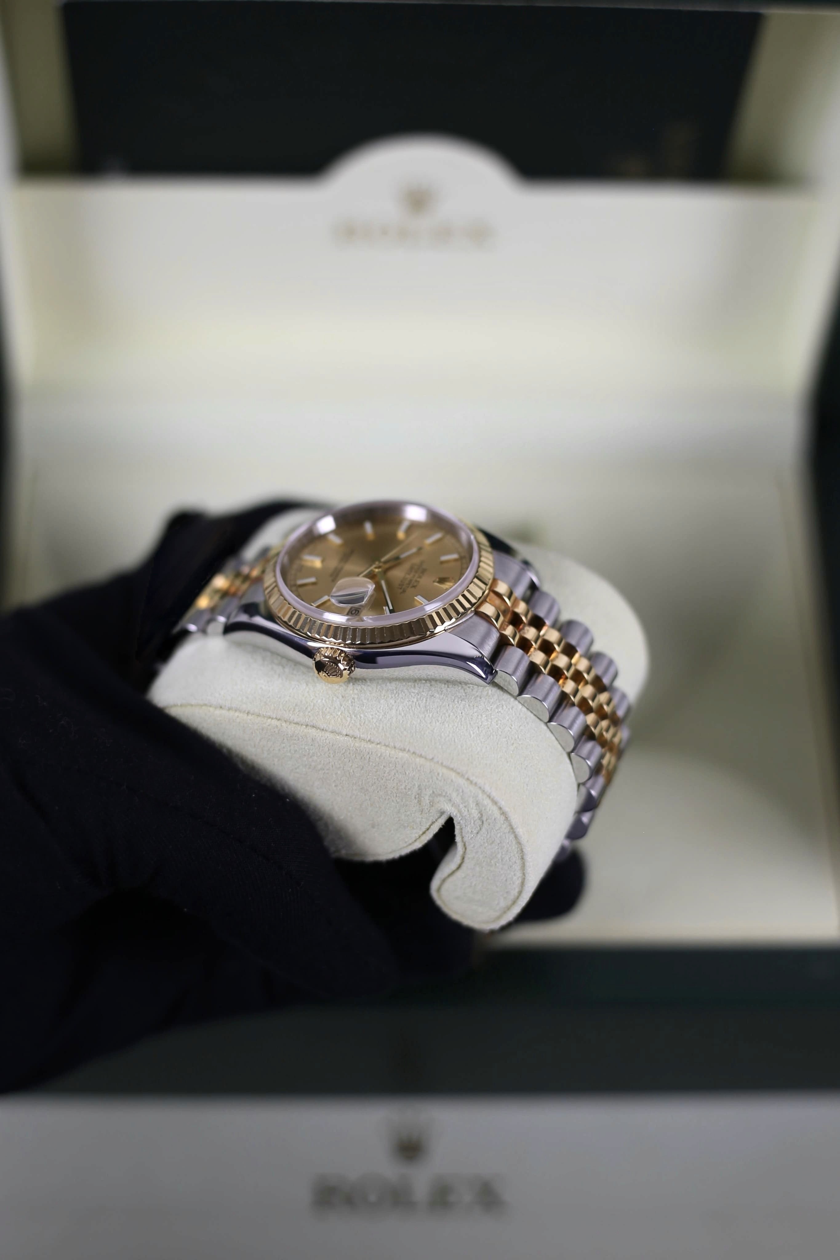 DATEJUST CHAMPAGNE INDEX HIDDEN CLASP 18K YELLOW GOLD BEZEL