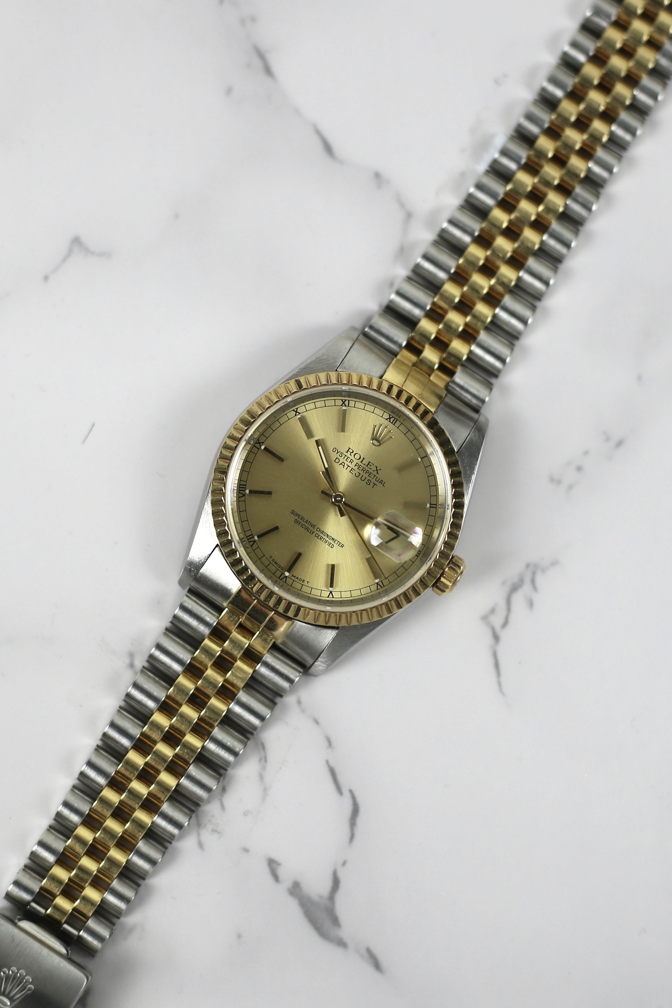 DATEJUST 36 CHAMPAGNE RAILROAD 18K YELLOW GOLD BEZEL