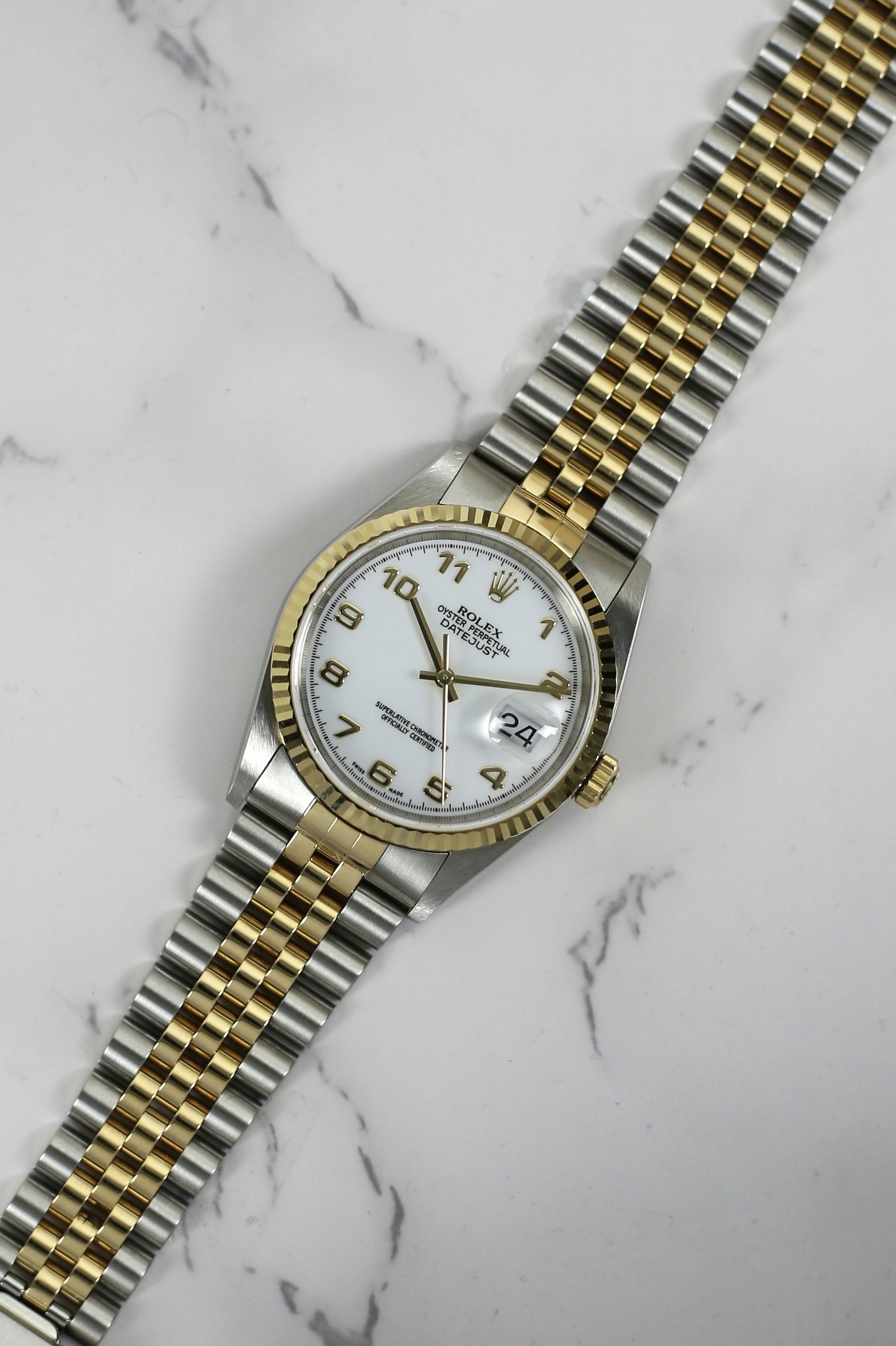 DATEJUST 36 WHITE DIAL 18K YELLOW GOLD BEZEL