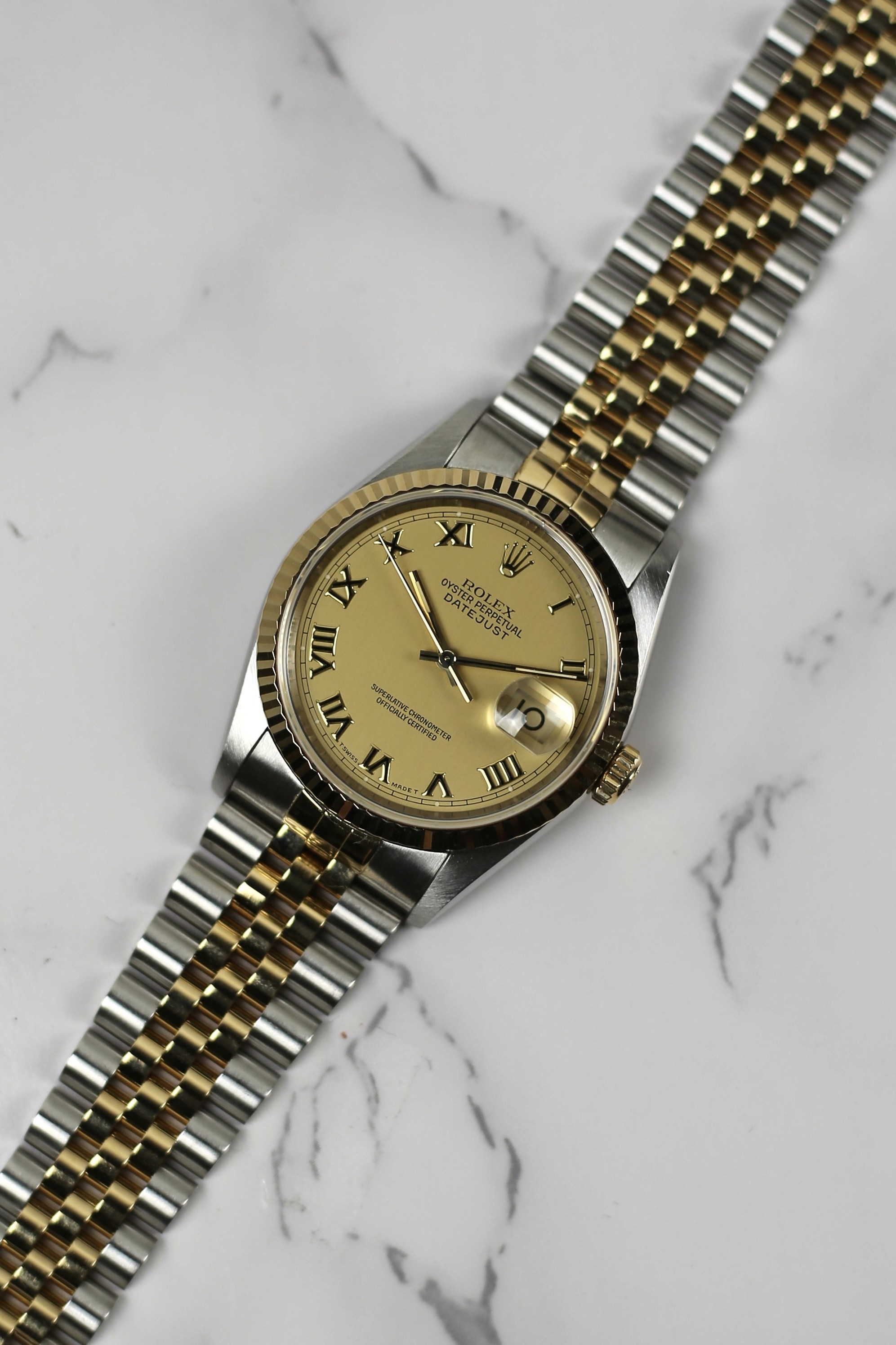 DATEJUST CHAMPAGNE ROMAN 18K YELLOW GOLD BEZEL