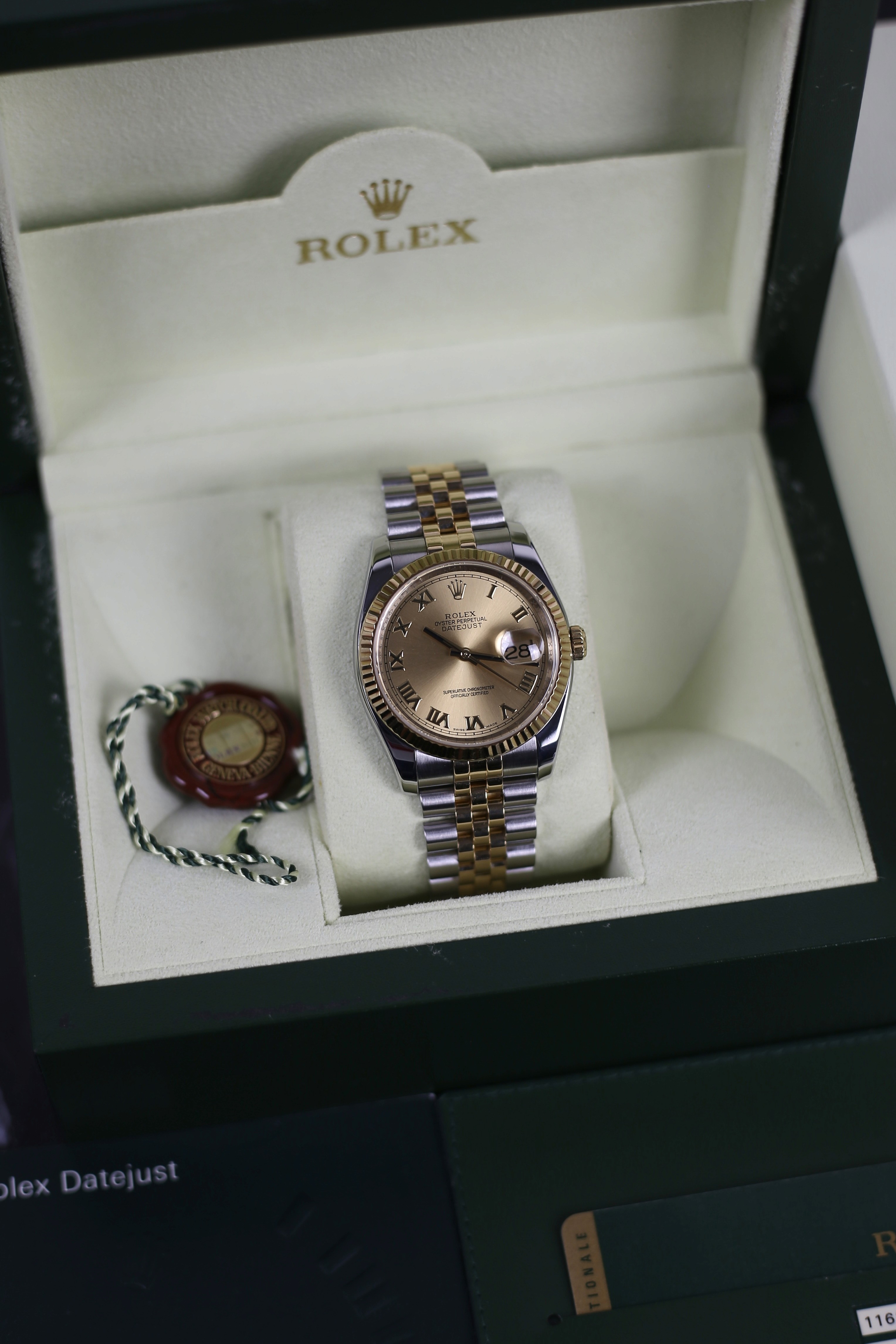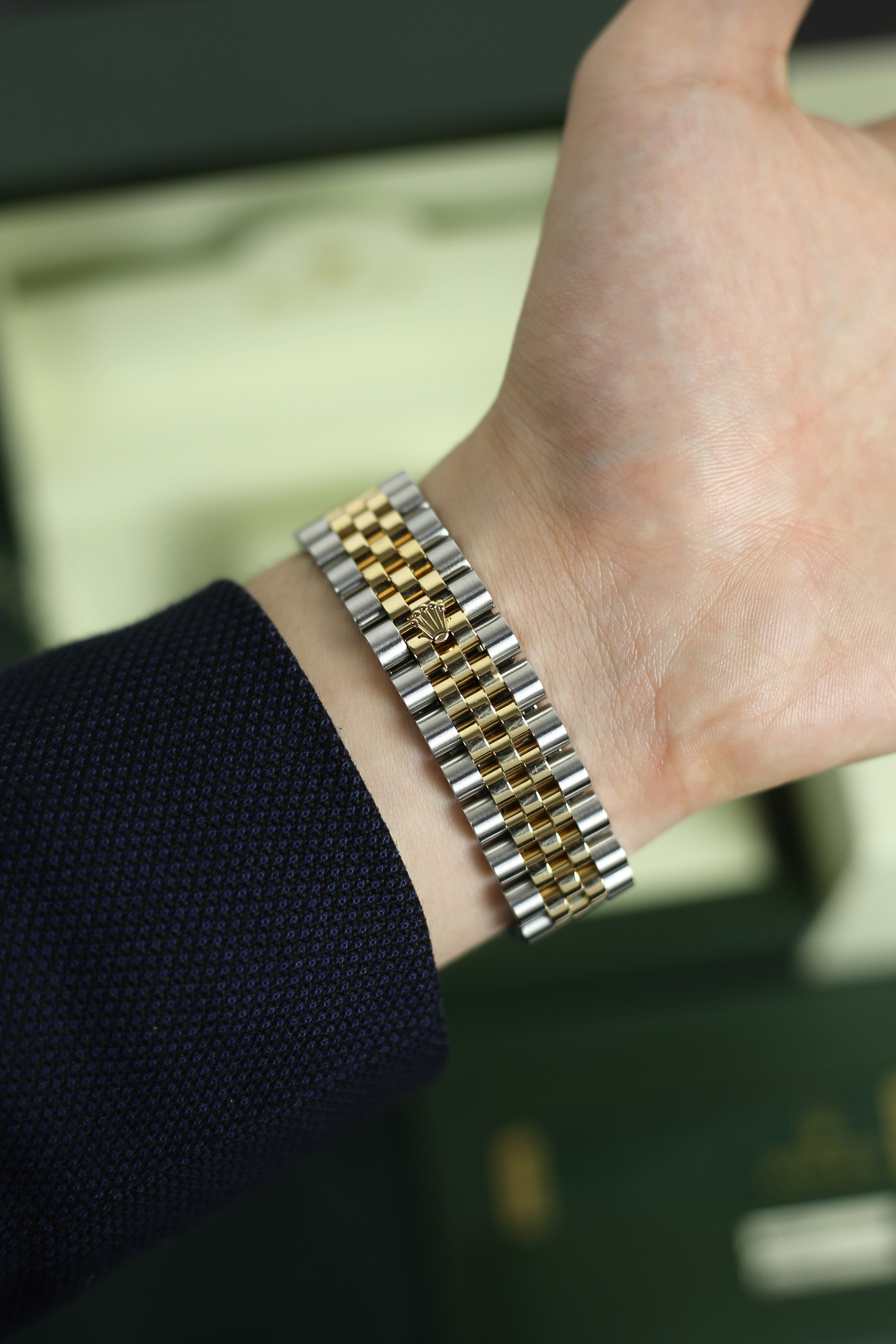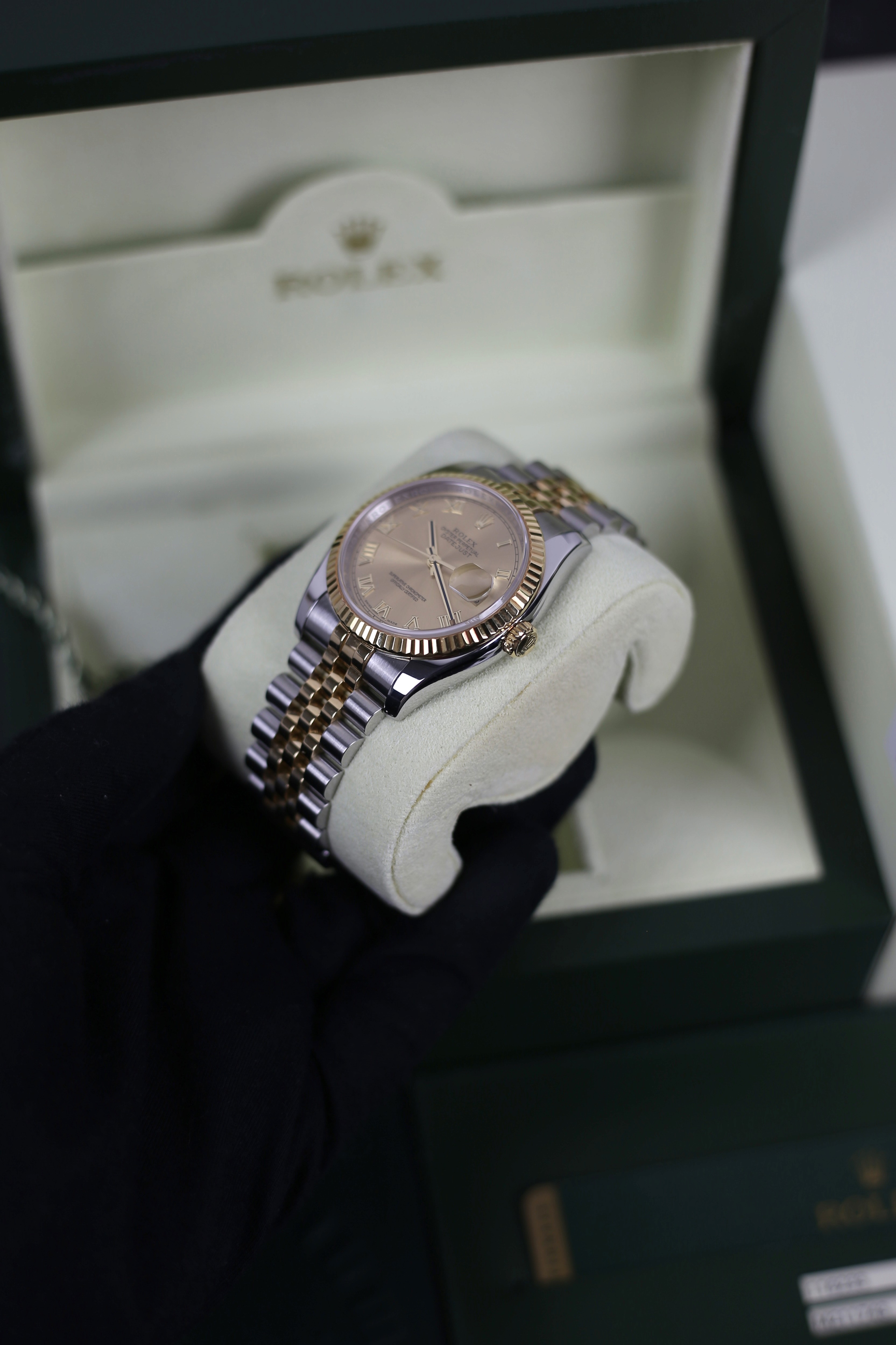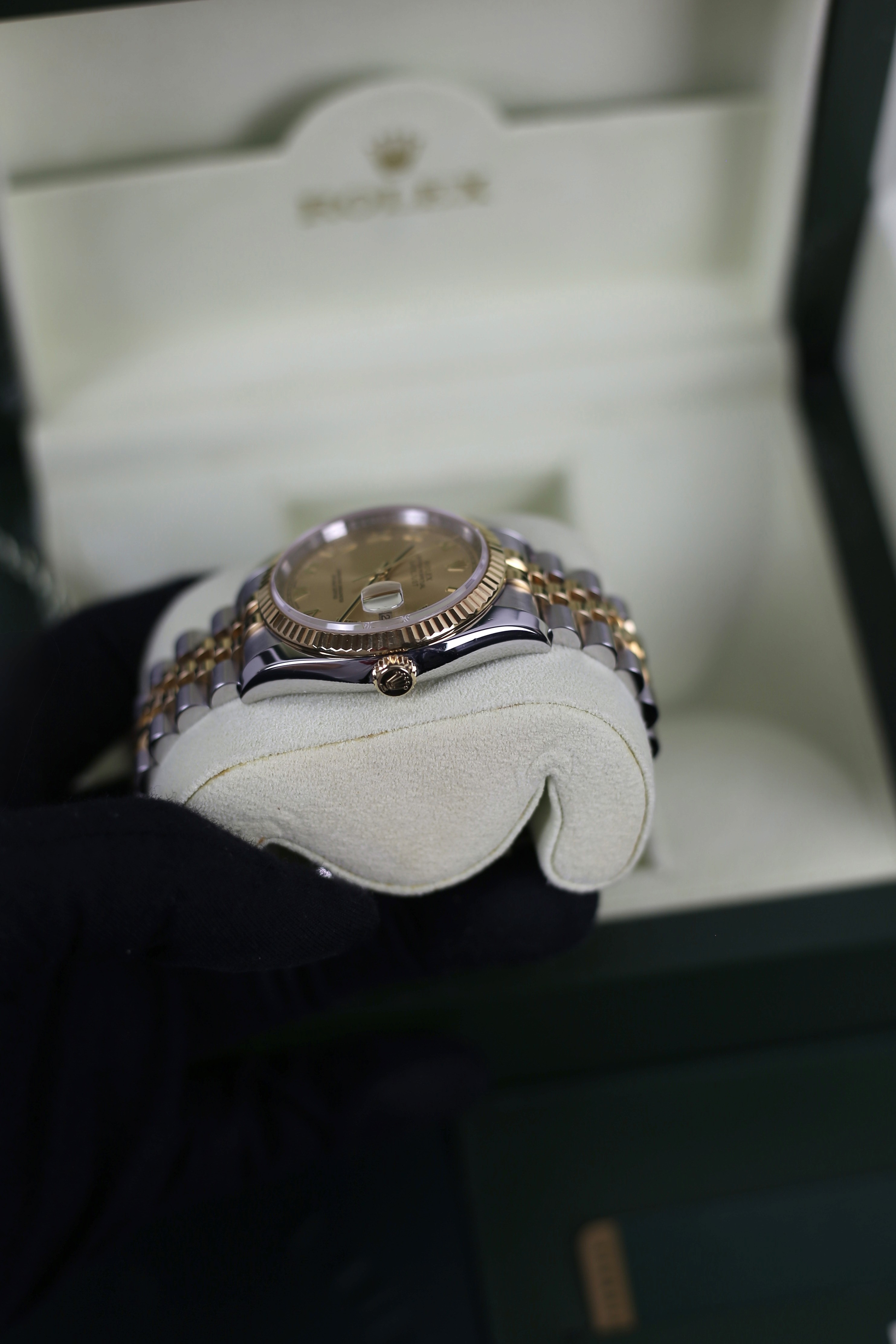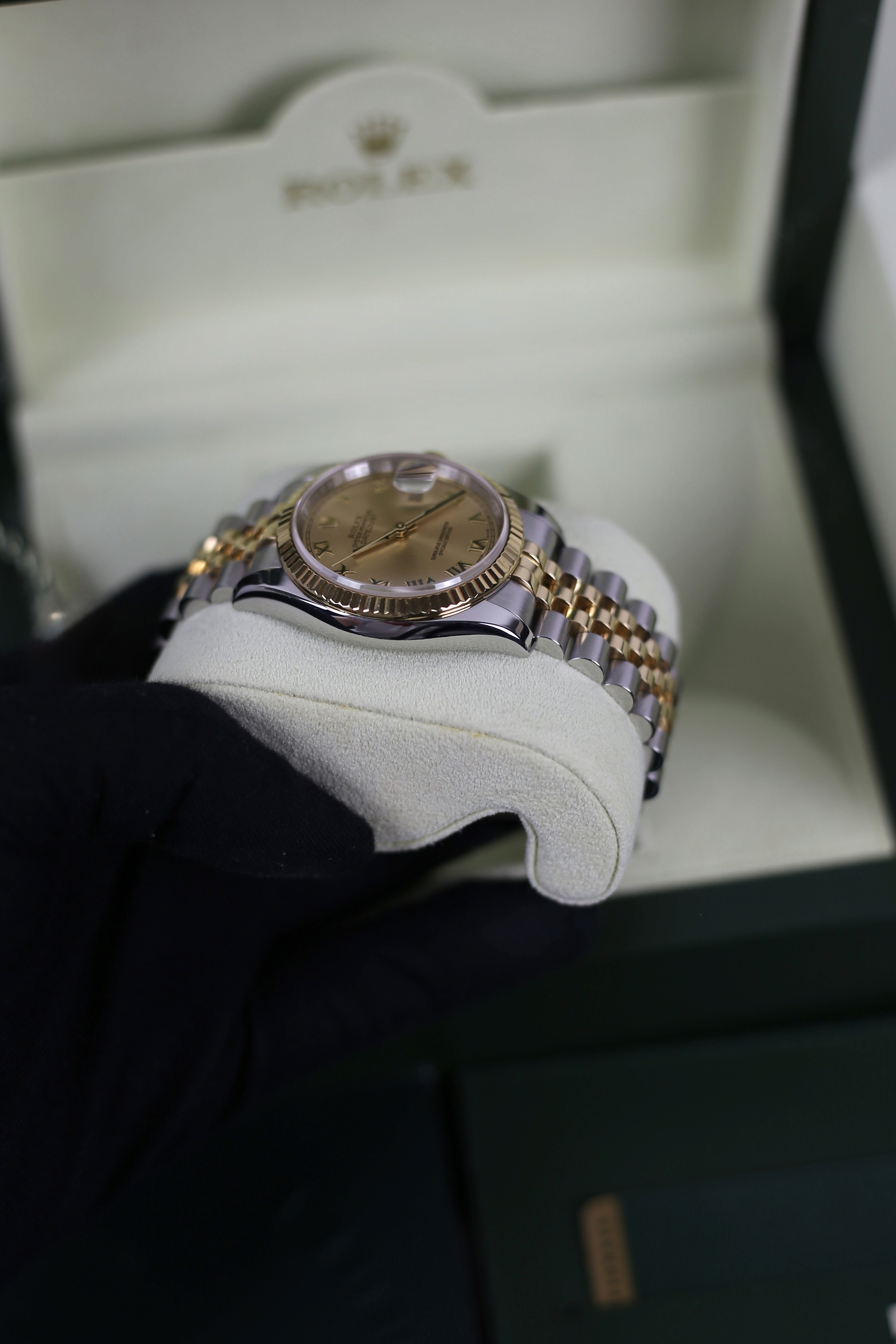 DATEJUST CHAMPAGNE ROMAN HIDDEN CLASP 18K YELLOW GOLD BEZEL