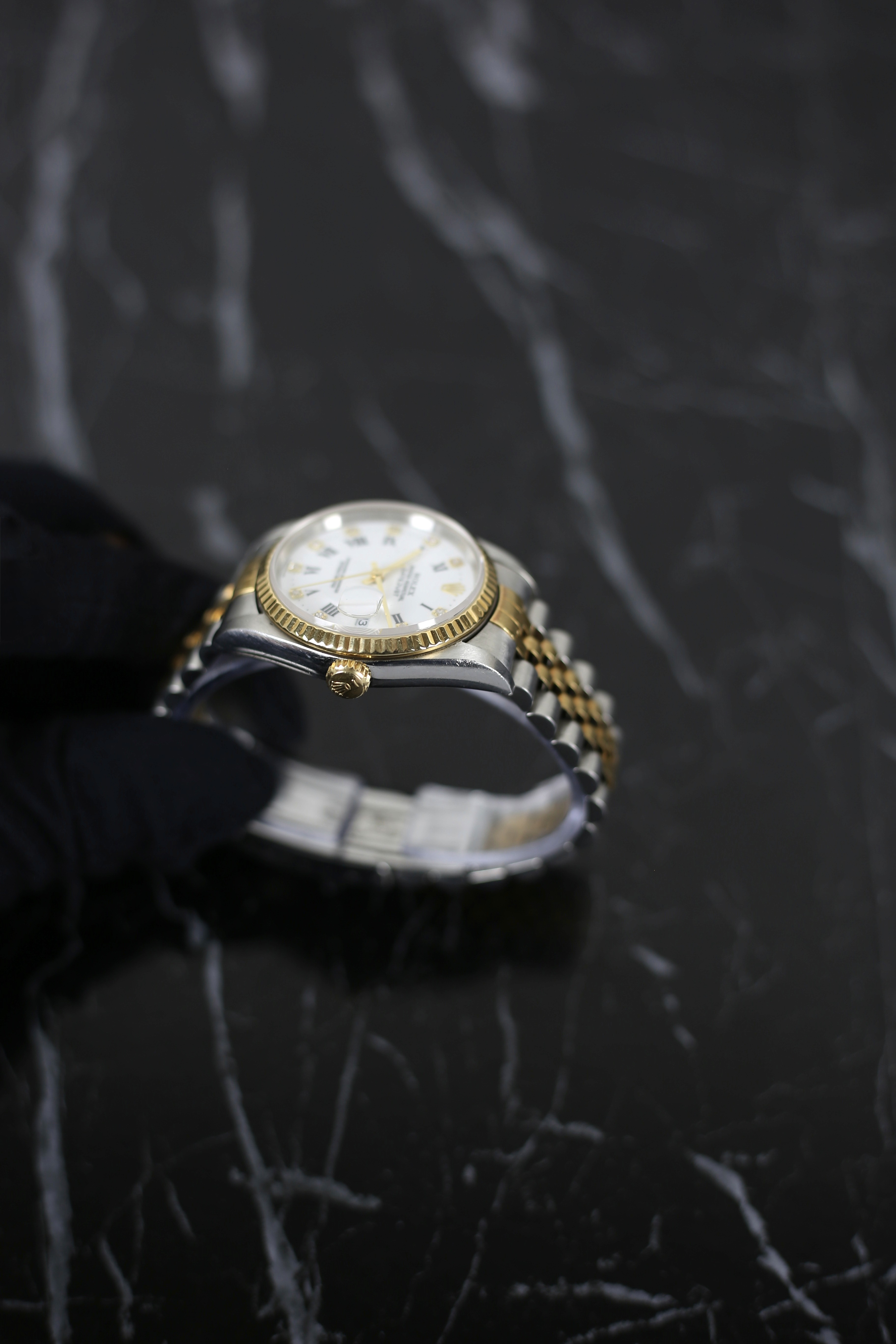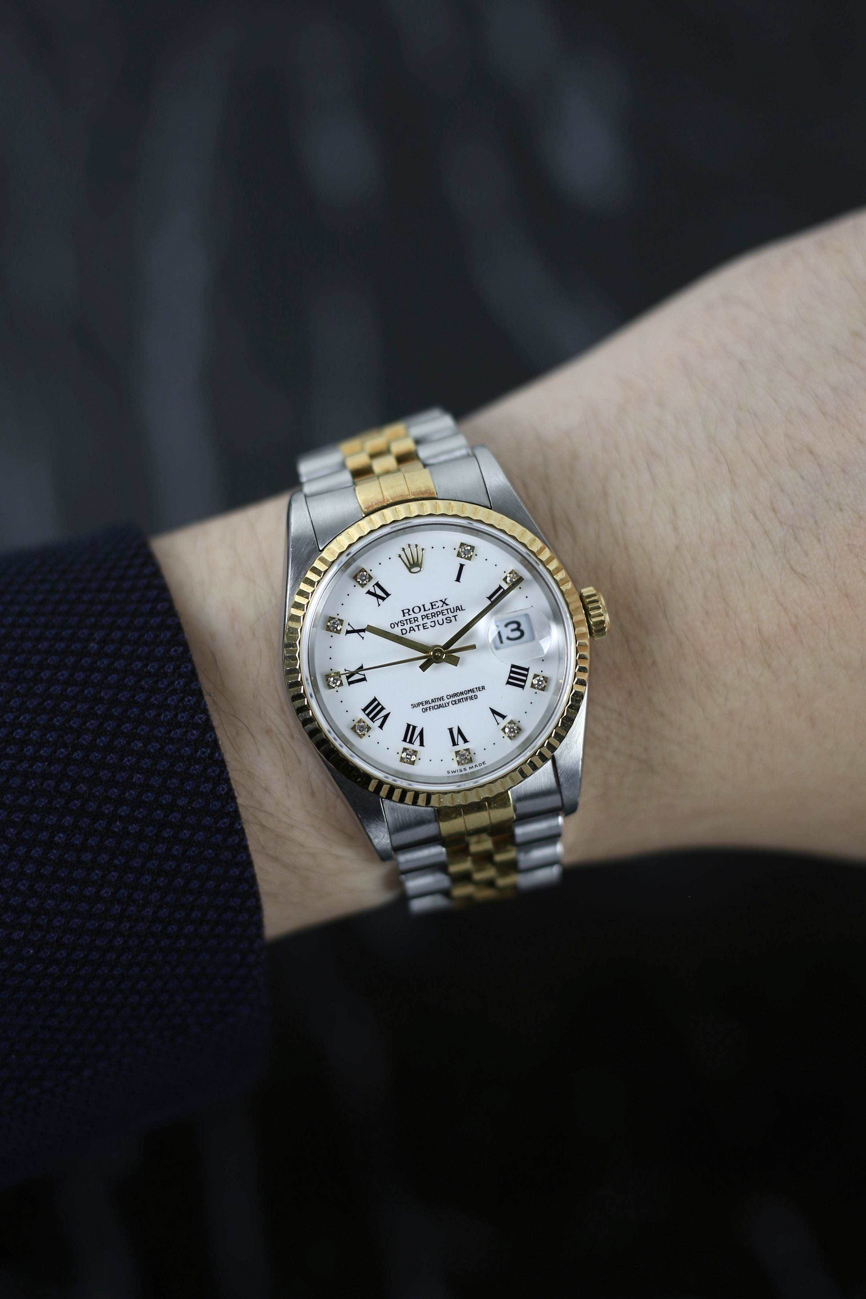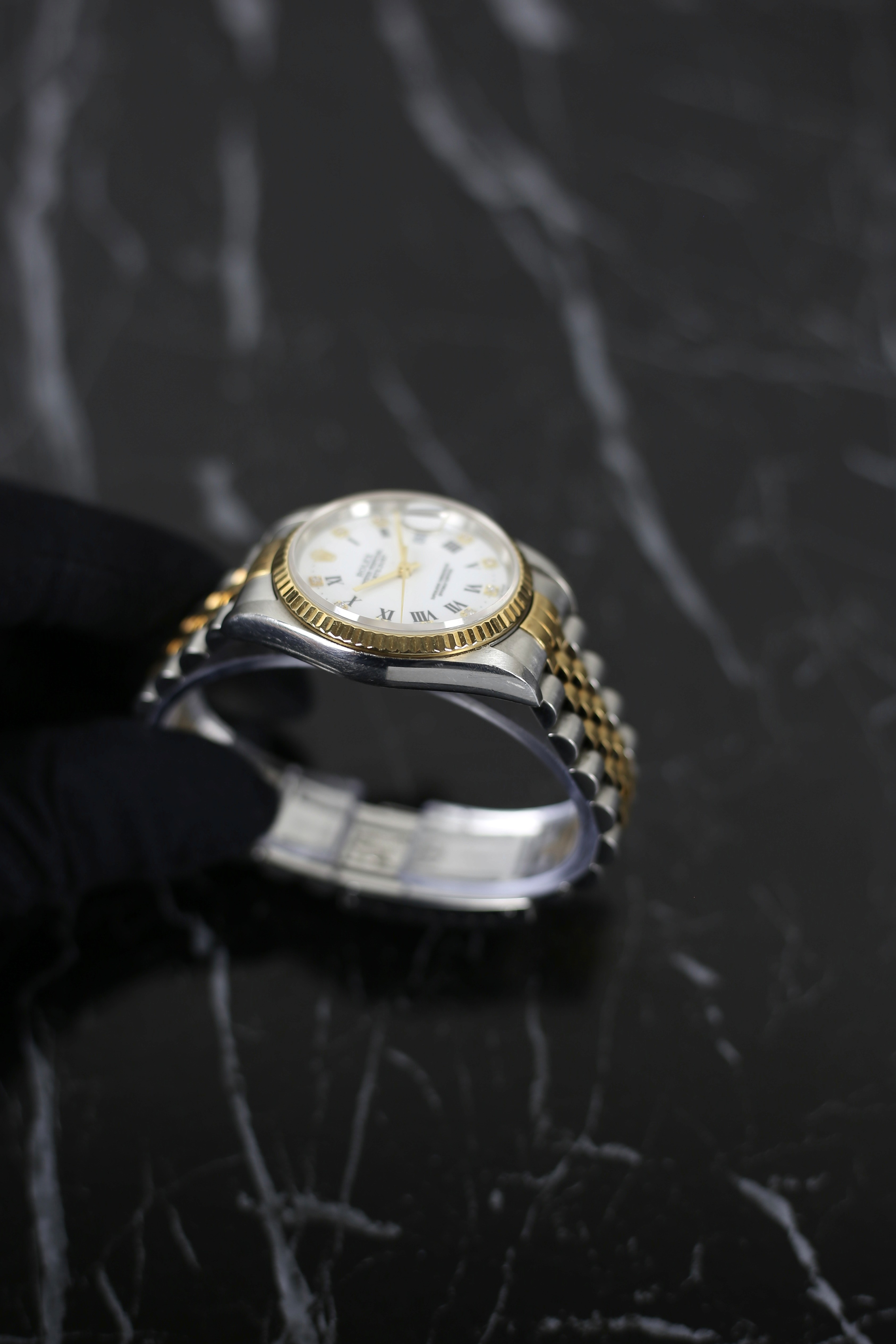 DATEJUST FACTORY WHITE ROMAN DIAMOND 18K YELLOW GOLD BEZEL