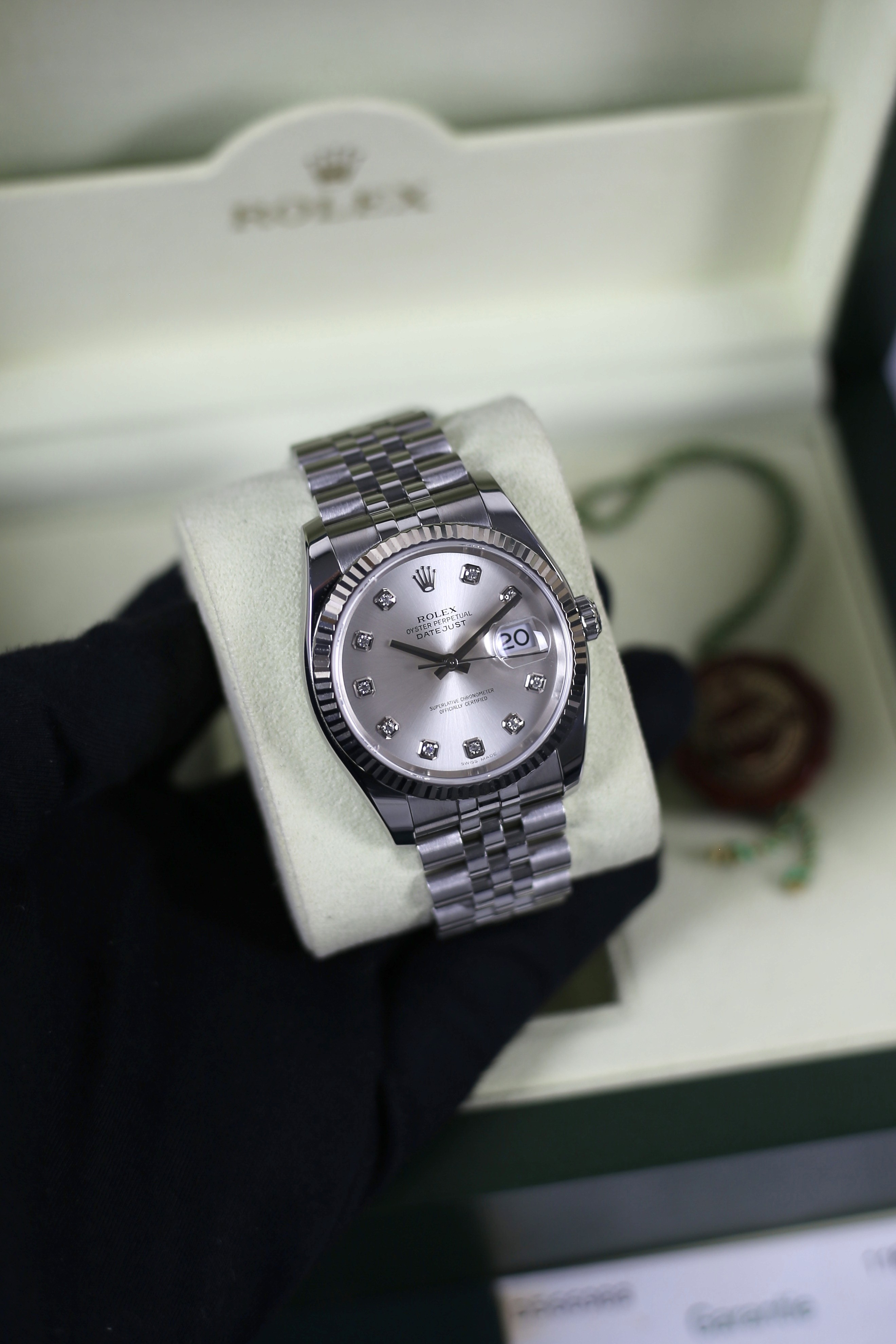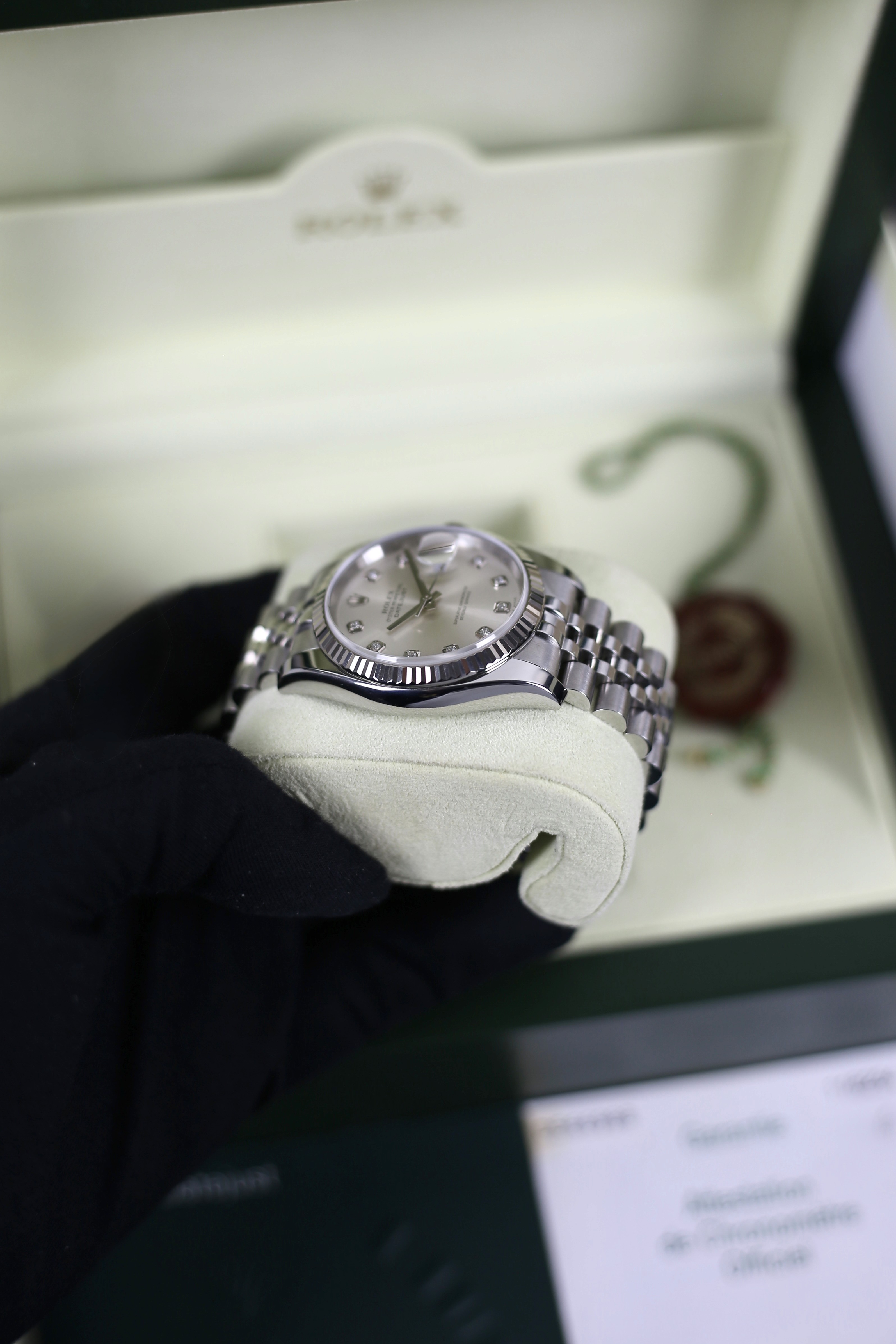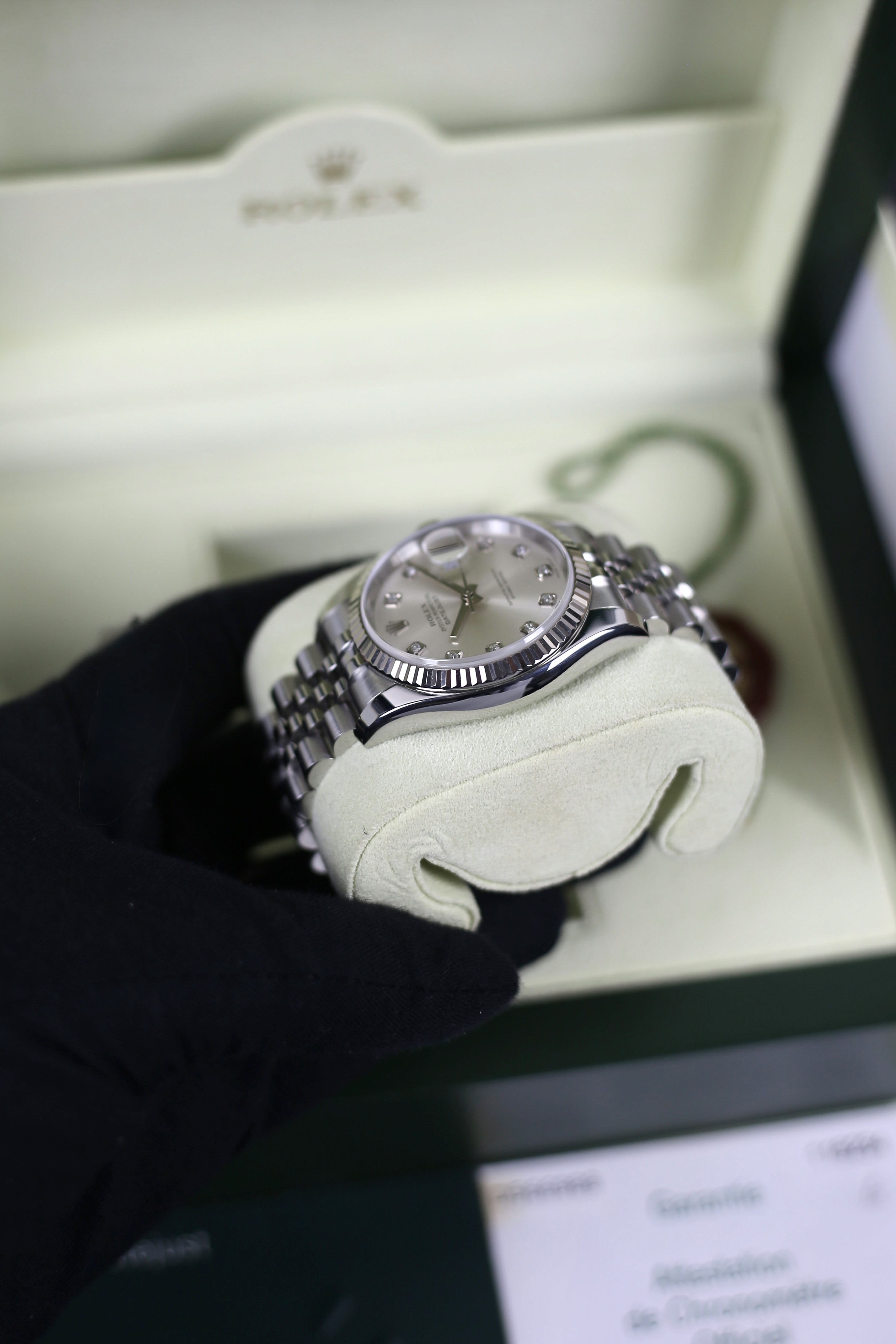 DATEJUST SILVER DIAMOND 18K WHITE GOLD BEZEL HIDDEN CLASP