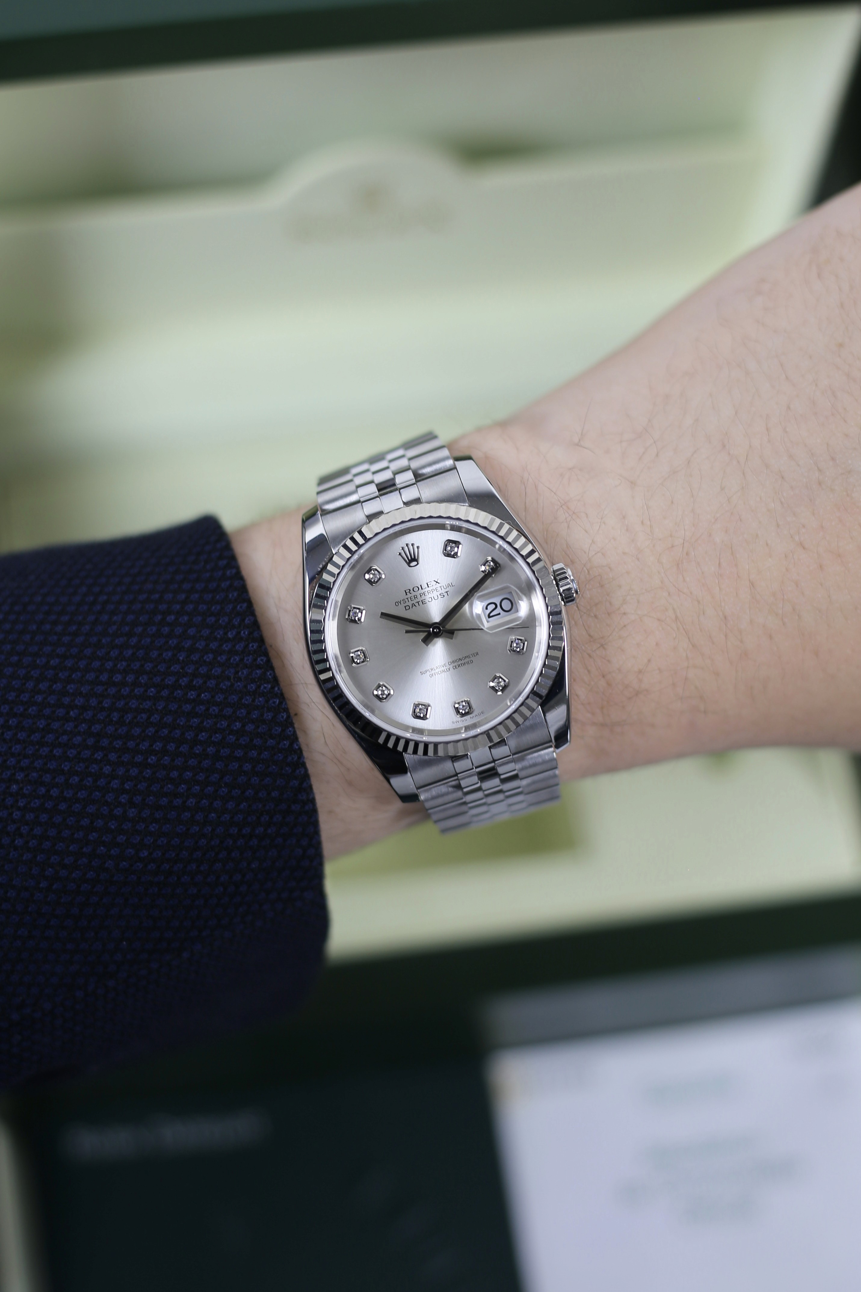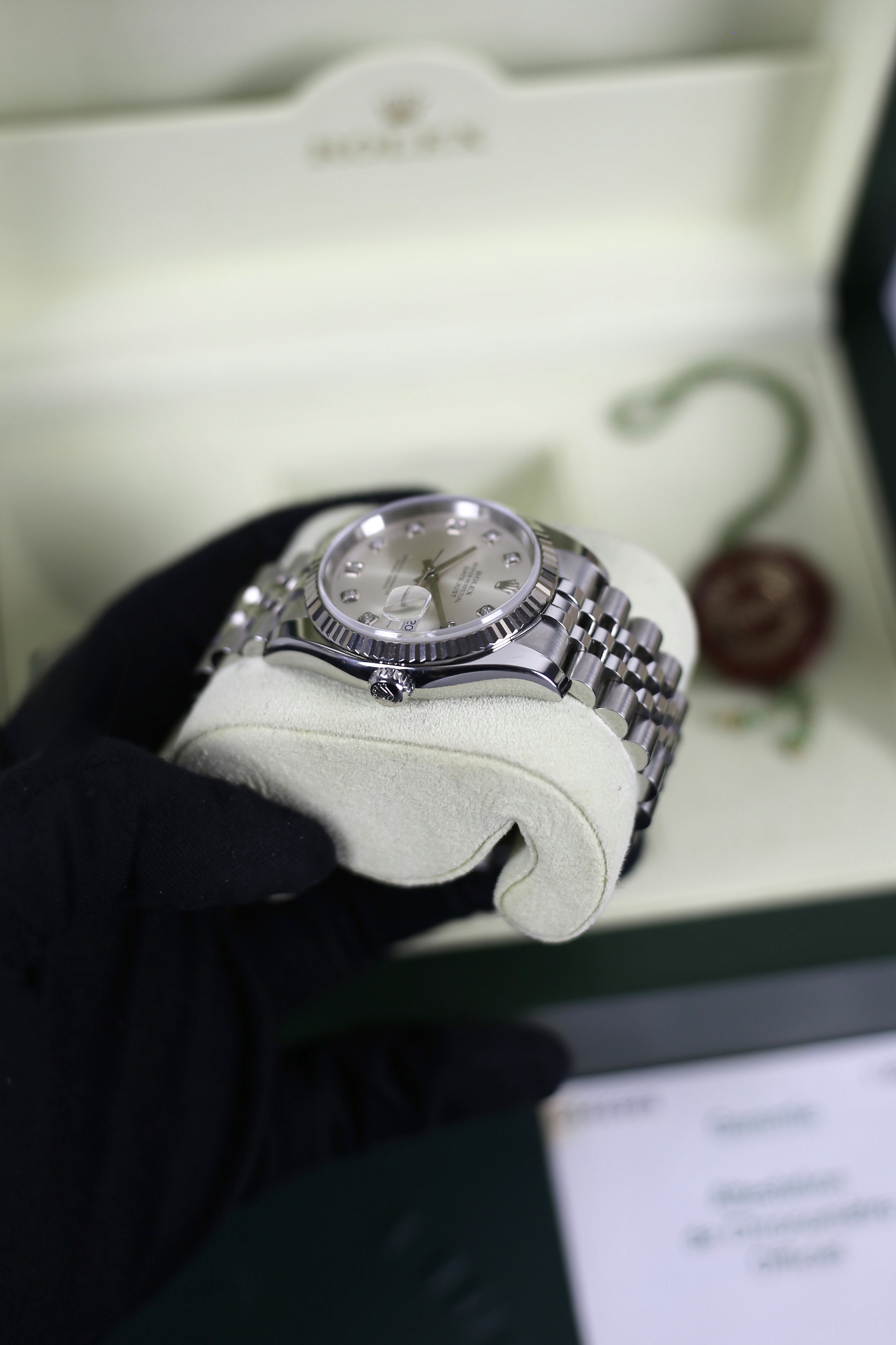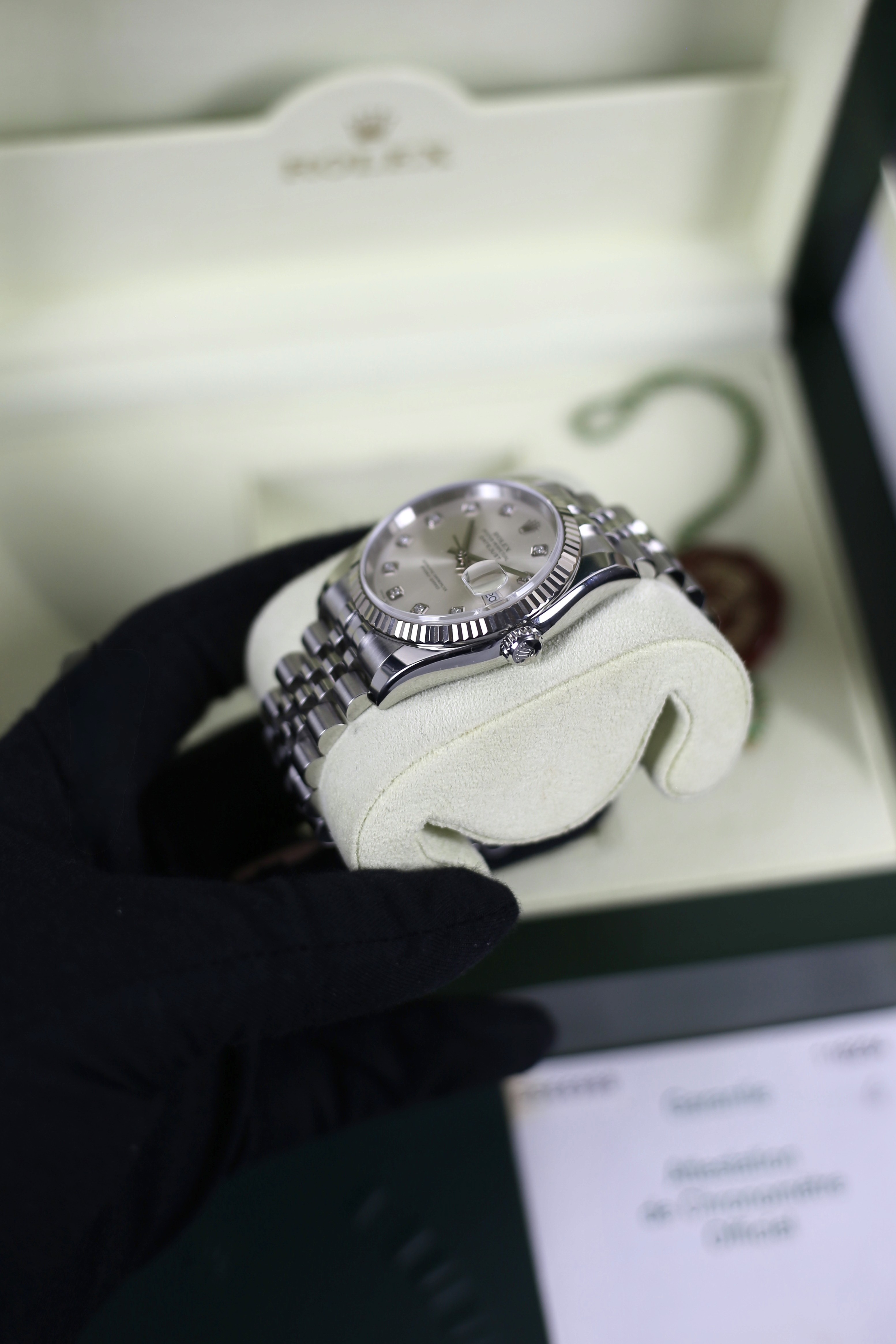 DATEJUST SILVER DIAMOND 18K WHITE GOLD BEZEL HIDDEN CLASP