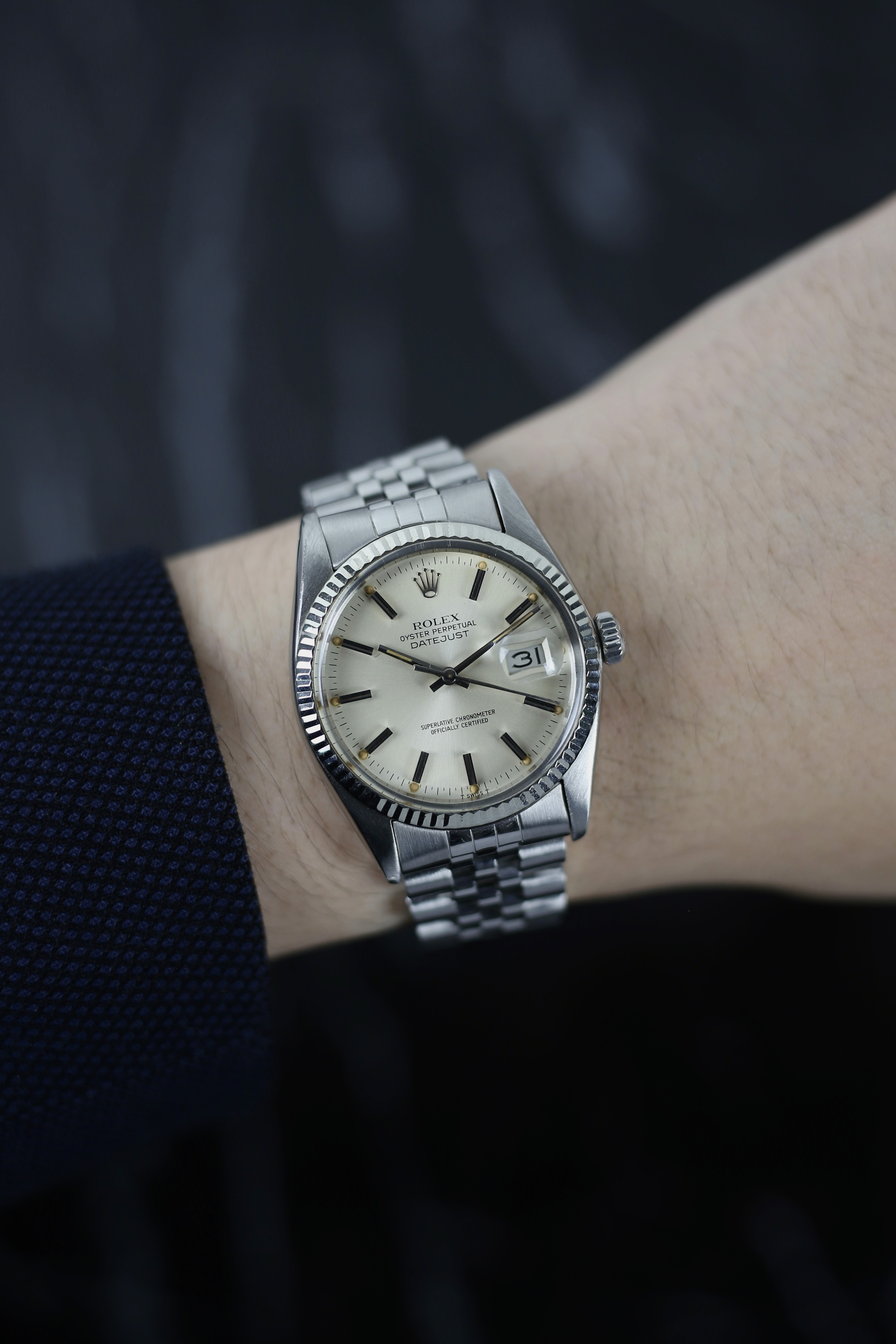 DATEJUST SILVER DOORSTOP 18K WHITE GOLD BEZEL
